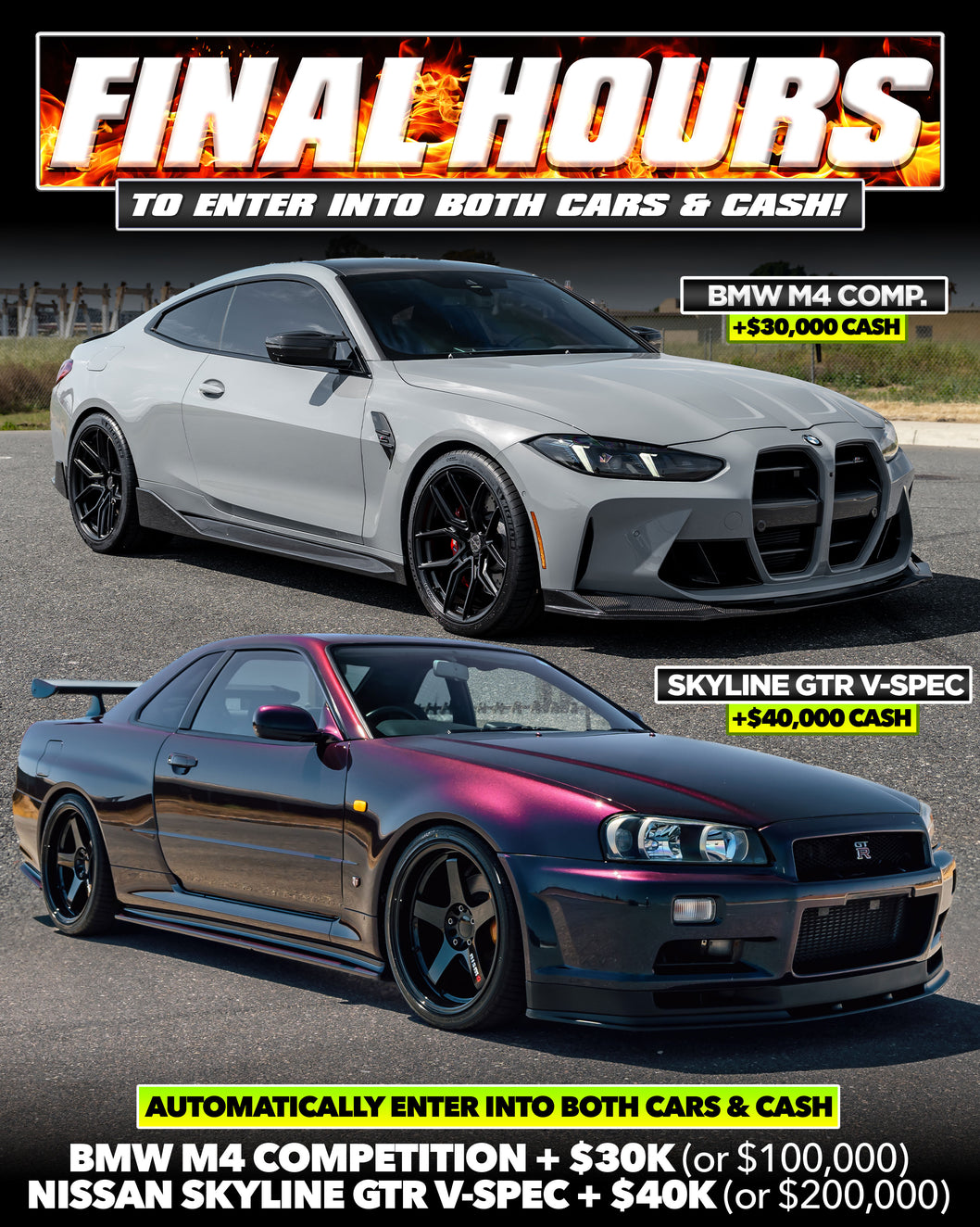 This is how we roll the right way. NISSAN SKYLINE GT-R V-SPEC & $40K or $200,000 CASH could literally end up in YOUR driveway or YOUR bank account. Don’t wait—secure ENTRIES now..
