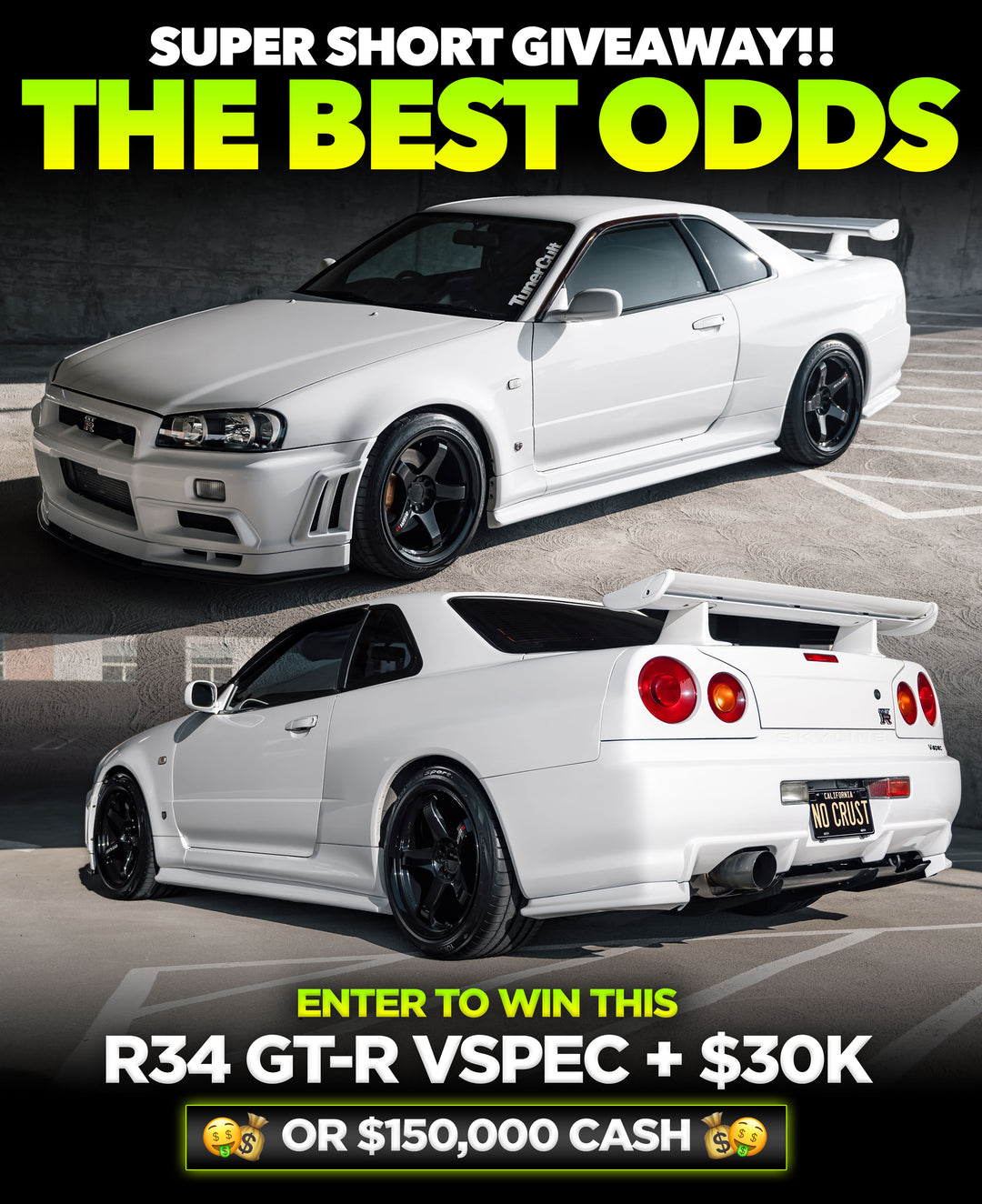 This is how we end a year the right way. A R34 GT-R VSPEC + $30K or $150,000 CASH could literally end up in YOUR driveway or YOUR bank account. Don’t wait—secure ENTRIES now..