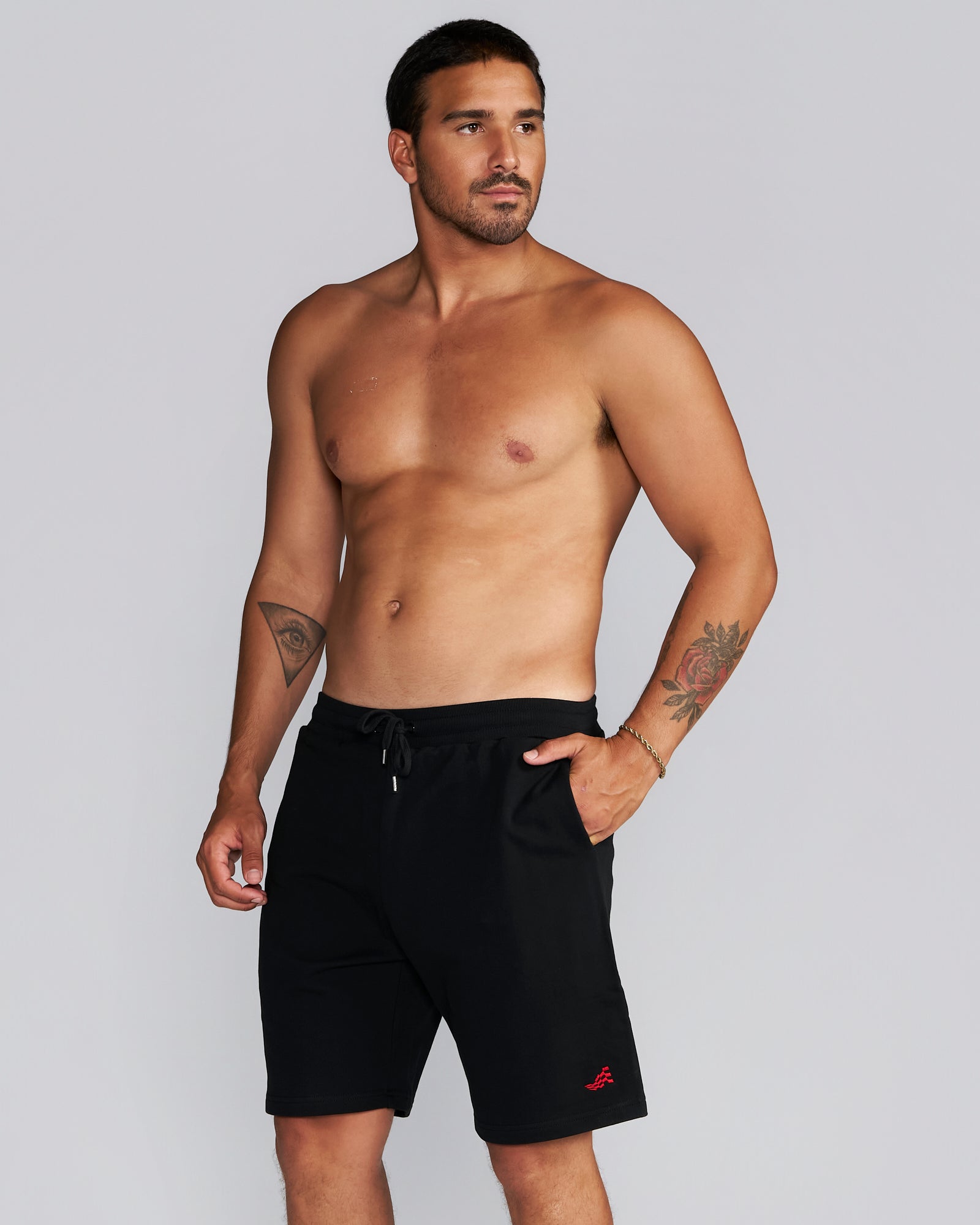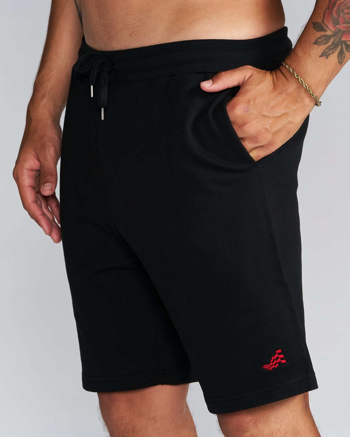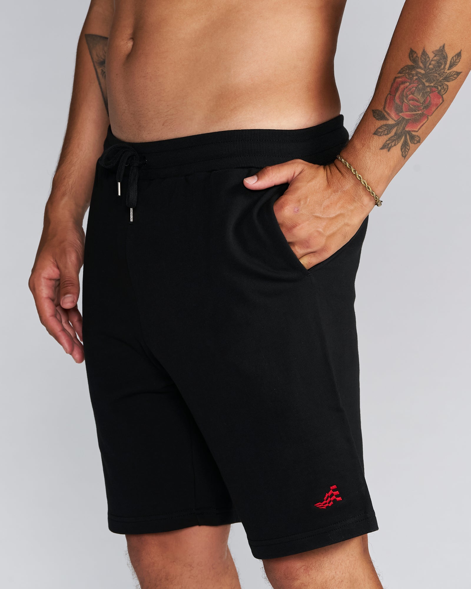 Regular fit , Mid weight, 9.4 oz, 100% Cotton, sweat shorts, one back pocket, flat external draw cords, preshrunk to minimize shrinkage.