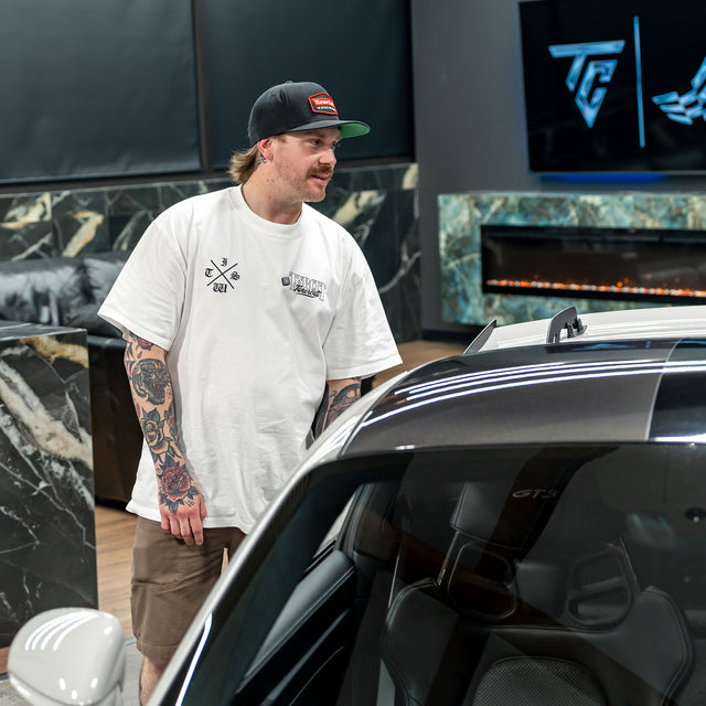 4 T-SHIRTS, HOODIE. 40OZ. FLASK, WASH MITT