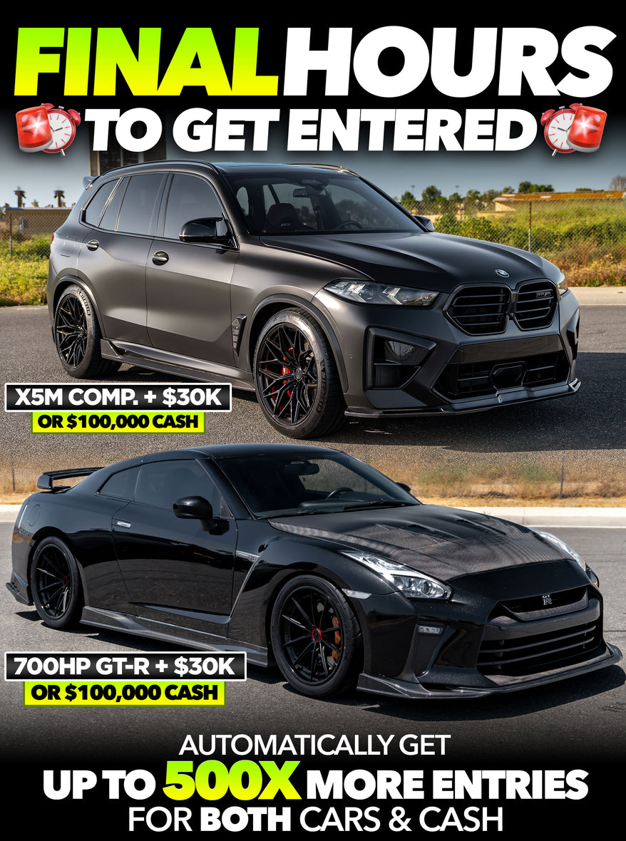One Grand Prize Winner will win a "TOP-SECRET" 700+HP Nissan GT-R + $30K CASH or the choice of $100,000 CASH!