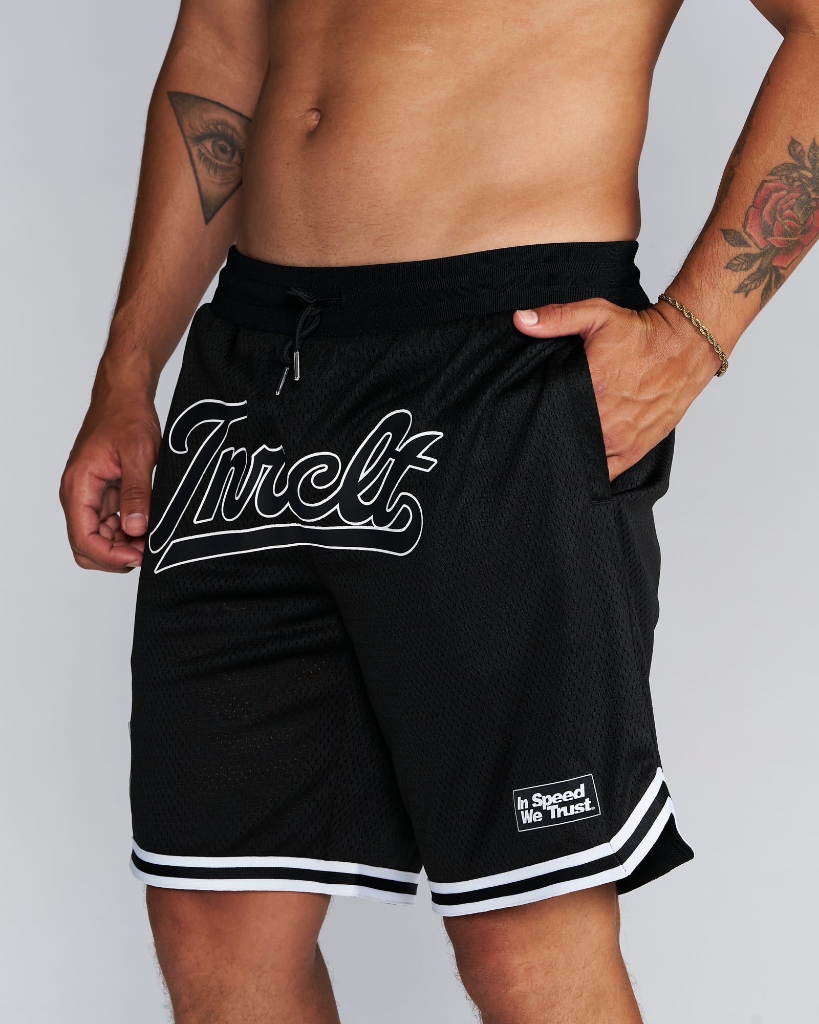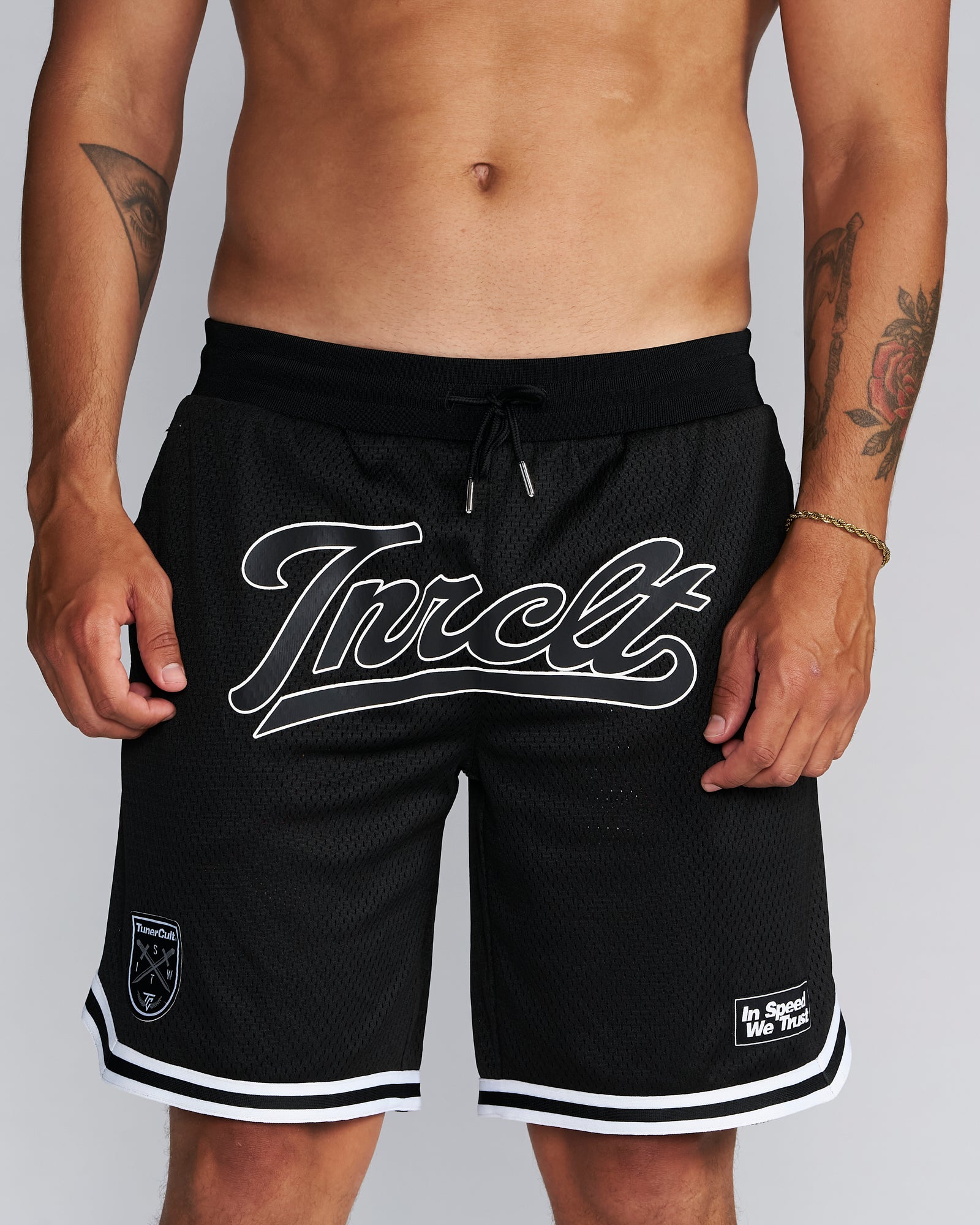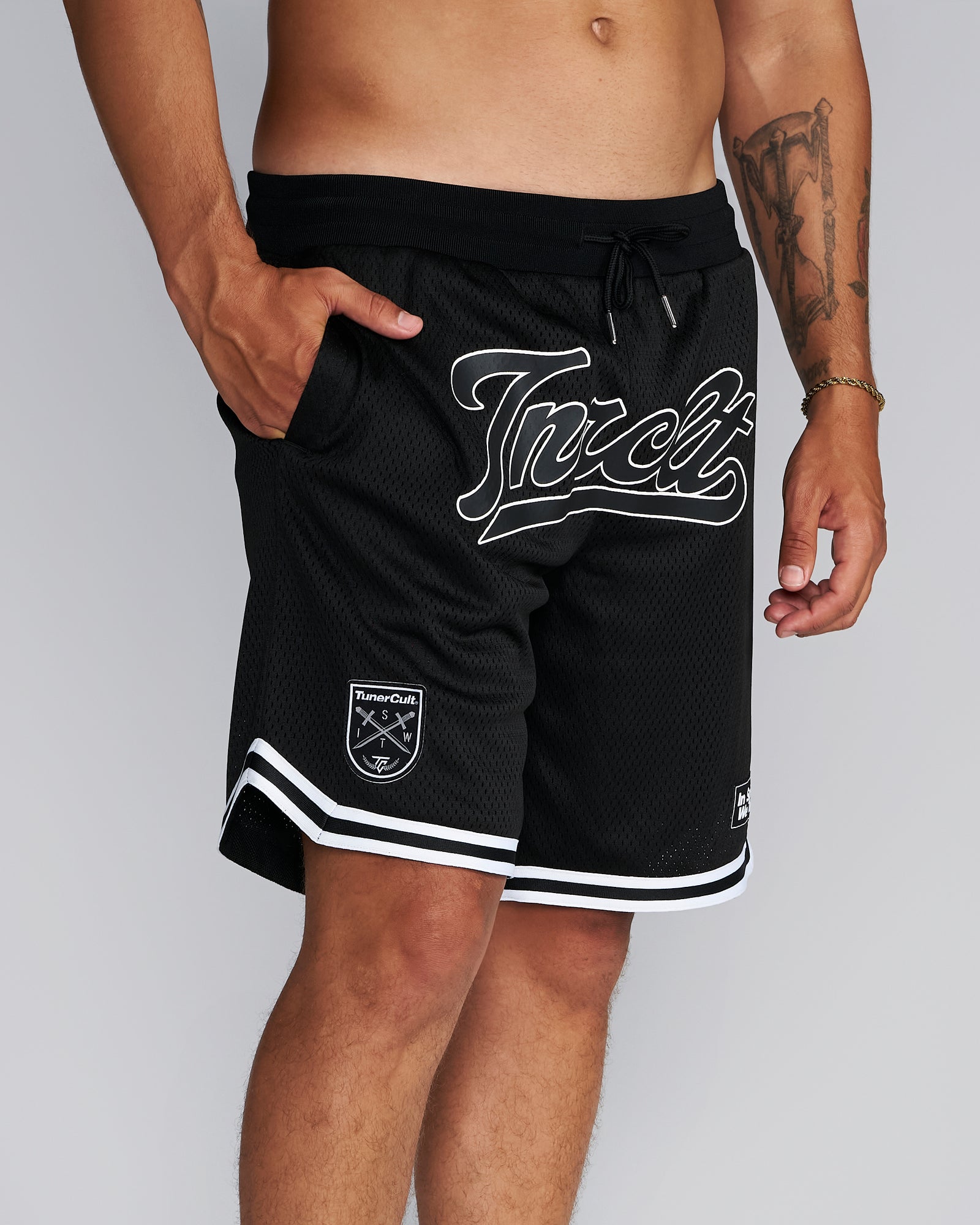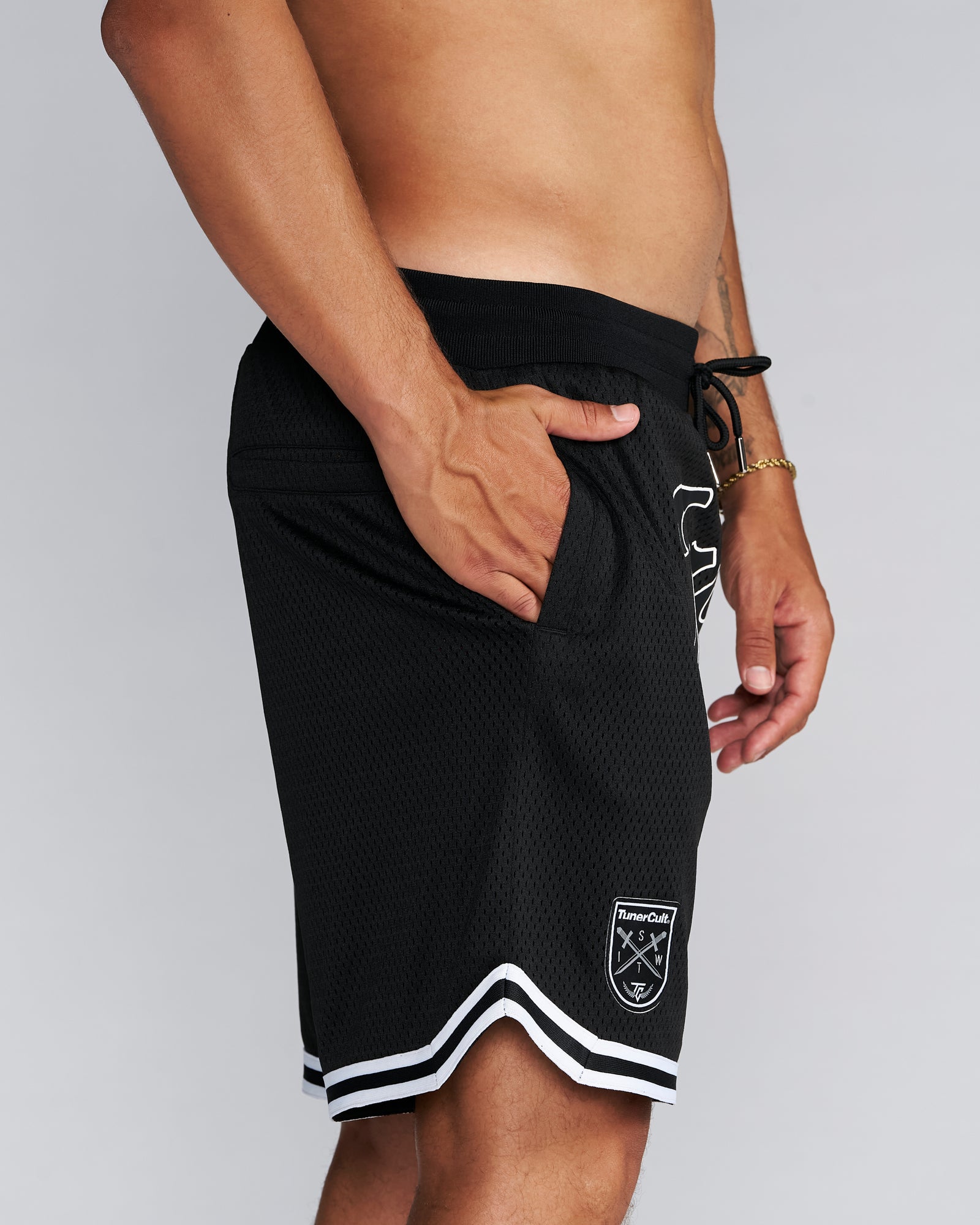Embroidered Logos, Heavyweight 100% polyester, perforated double-layer mesh shorts, side pockets, elastic waistband, drawcords with metal tips, tackle twill, preshrunk to minimize shrinkage.
